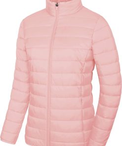 Women-s Puffer Jacket Lightweight Quilted Padded 4 Pockets Zip-up Stand-collar Winter Fleece Coat