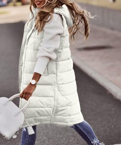 Women’s Long Down Vest Sleeveless Hooded Jacket Plus Size Winter Warm Slim Zipper Coats Outdoor Puffer Quilted Vest
