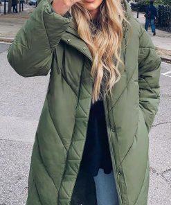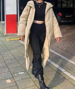 Women’s Long Size Zip Hooded Quilted Down Coat
