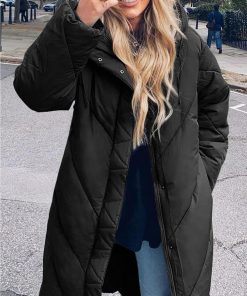 Women’s Long Puffer Coat Long Sleeve Padded Winter Down Coats Hooded Parka Jacket