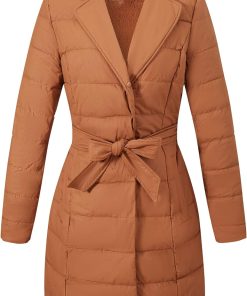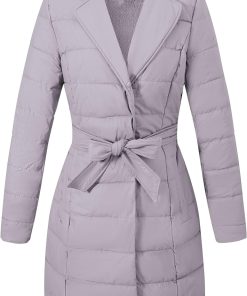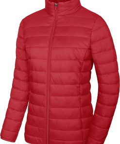 Women’s Puffer Jacket Lightweight Quilted Padded 4 Pockets Zip-up Stand-collar Winter Fleece Coat