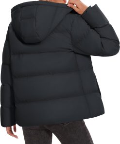 - HOODED: Adjustable hooded drawcords to help trap the warmth and prevent air from entering; High-density synthetic fibers that allows this puffer jacket for womens to be skin-friendly and provide a tailored. curvy fit;