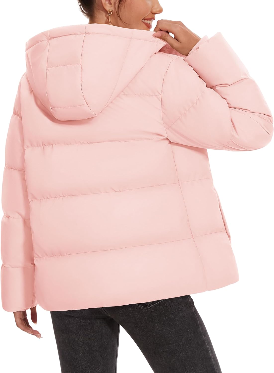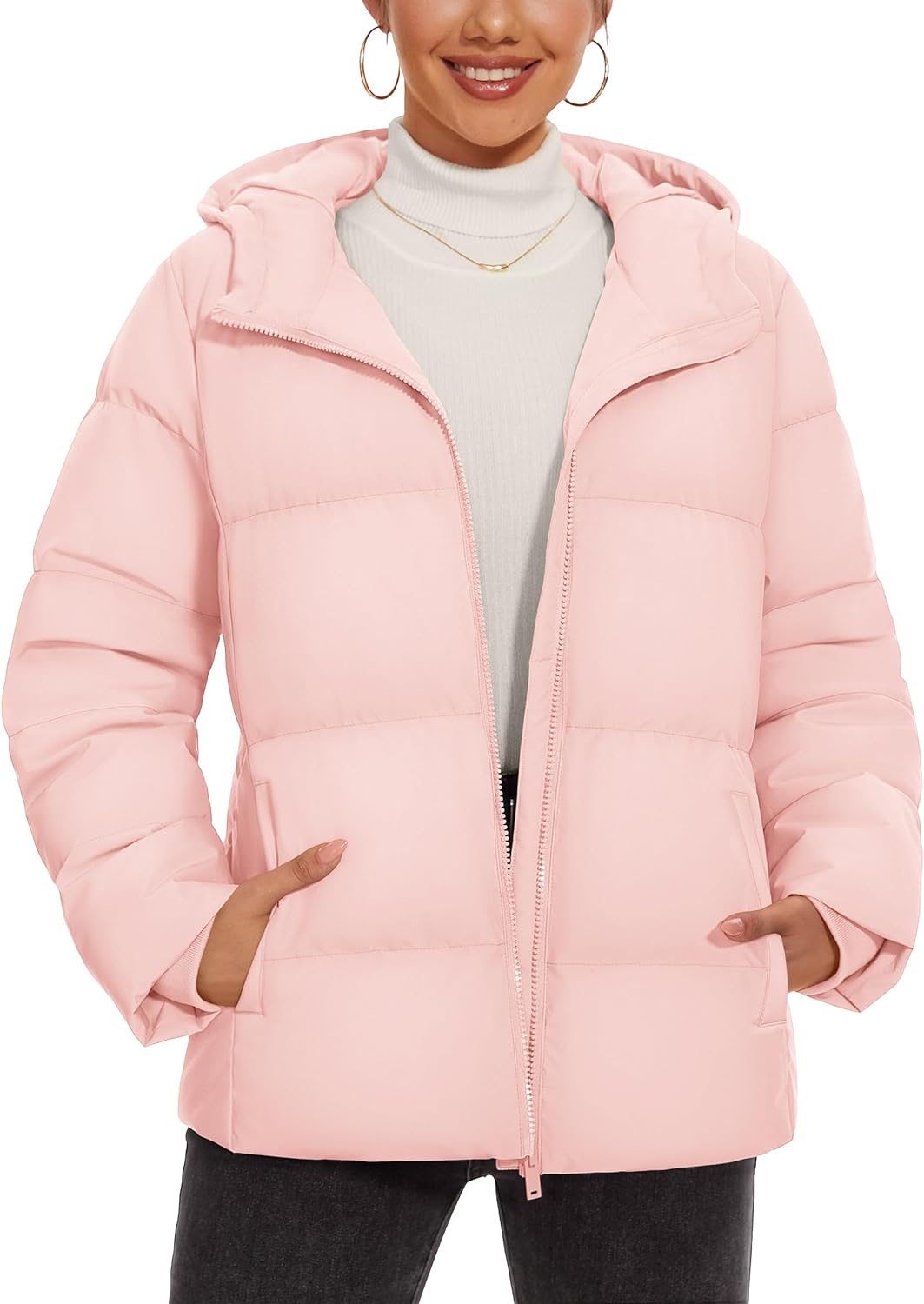 Women’s Down Jacket with Hood Lightweight Thermal Quilted Coat with Pockets Zip-up Winter Warm Puffer Jacket