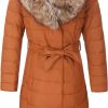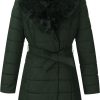 Women’s Puffer Jacket Faux Leather Bubble Padding Sherpa-Lined Coat with Removable Fur Collar